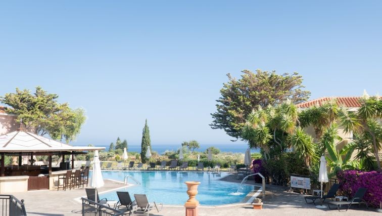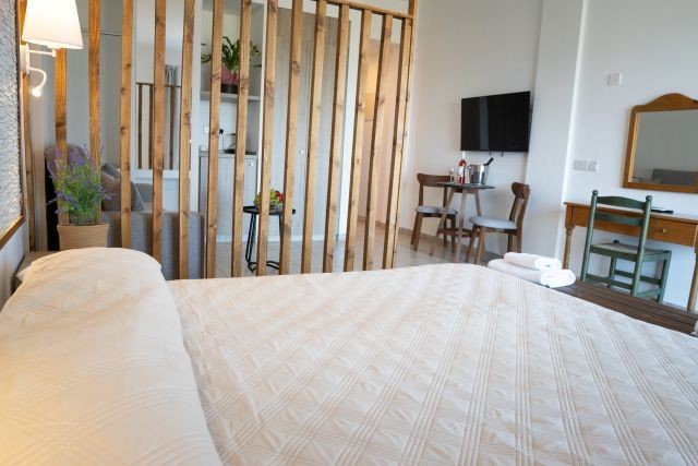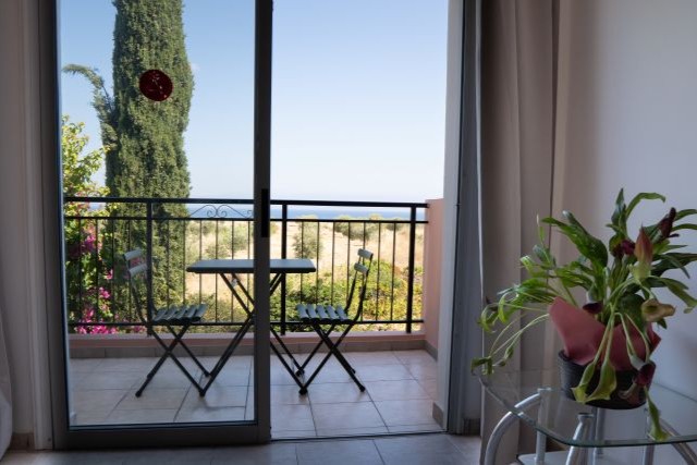 U kunt kiezen voor een studio met tuinzicht of een studio met zeezicht.