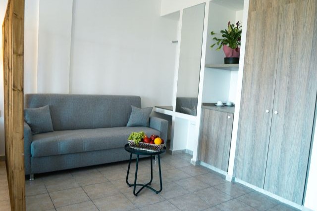 Uw studio is 30 m2 groot en geschikt voor maximaal twee volwassenen en één kind tot en met 14 jaar, de studio ligt op de begane grond of de eerste etage. Het beschikt over een zithoek met satelliet televisie en een balkon of een terras. De kitchenette is ingericht met een koelkast, een twee pits elektrische kookplaat, broodrooster, waterkoker en koffiezetapparaat. De studio is uitgerust met airconditioning en wifi, het heeft een tweepersoonsbed of twee separate bedden, voor het kind wordt er een opklapbed bijgeplaatst. De badkamer is voorzien een bad/ douche combinatie, wastafel en een toilet. Alle studio's hebben een eigen terras of balkon met zitje.