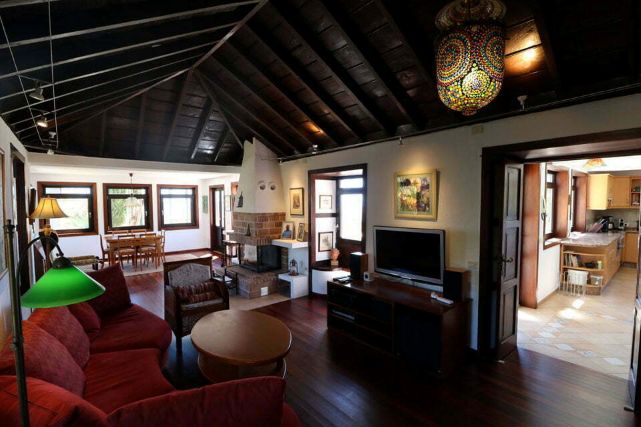 De woonkamer is ruim en sfeervol ingericht met antieke meubels en schilderijen. Hier vindt u een grote comfortabele bank, een open haard, wifi, een ruime eettafel en een televisie met satellietontvangst. Op de begane grond bevindt zich daarnaast een aparte ruimte met een slaapbank en een kledingkast.