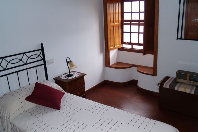 Er zijn twee slaapkamers: één met twee eenpersoonsbedden en een tweede slaapkamer met één eenpersoonsbed. Beide kamers zijn traditioneel ingericht met Canarische accenten en bieden uitzicht op de groene omgeving. De badkamer beschikt over een douche, wastafel, toilet en haardroger. Daarnaast is er een extra toilet aanwezig.