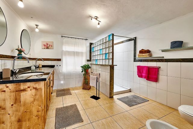 Er zijn twee badkamers aanwezig. De eerste is ruim opgezet en voorzien van twee wastafels, een inloopdouche, toilet en föhn. De tweede badkamer is compacter en beschikt over een wastafel, douche en toilet. Beide badkamers zijn verzorgd en functioneel ingericht.