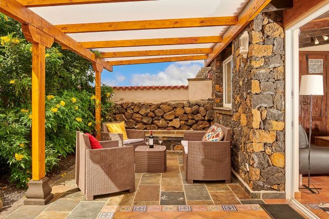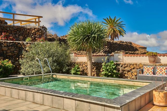 Zodra u naar buiten loopt, komt u direct op het overdekte terras met een loungezitje en een eettafel. Verder vindt u meerdere terrassen en een tuin waar u in alle rust kunt genieten van het buitenleven. Het privé zwembad vormt het middelpunt en is omringd door ligbedden. Aan het einde van de tuin leidt een pad met ongeveer twintig treden naar een hoger gelegen uitzichtpunt met zitje, waar u wordt beloond met een prachtig uitzicht en mooie zonsondergangen.