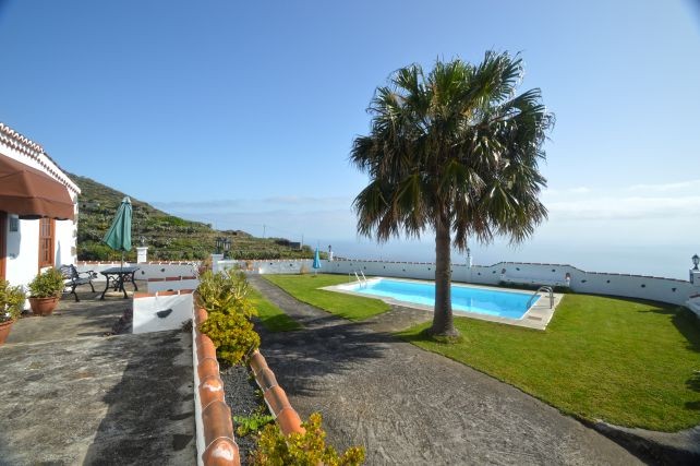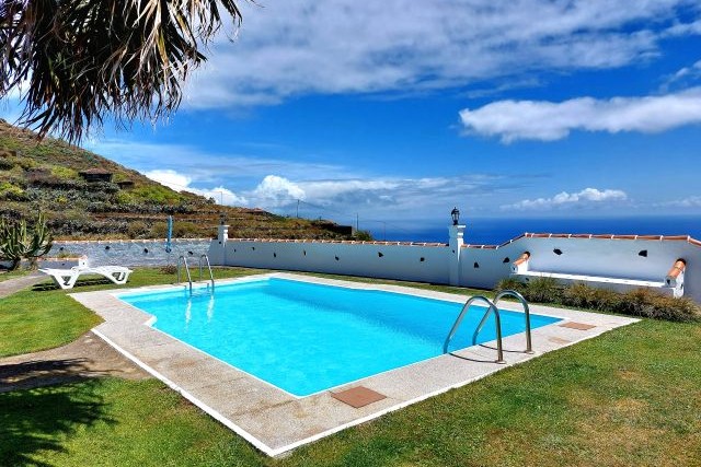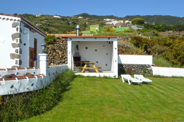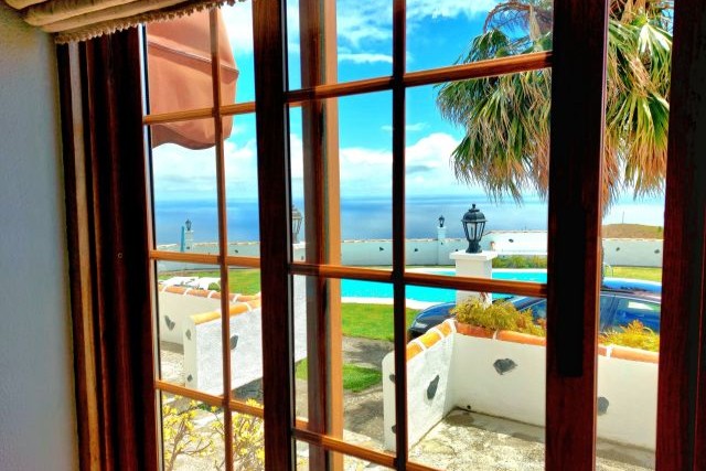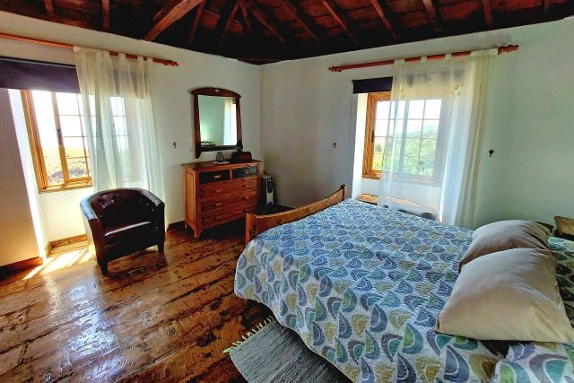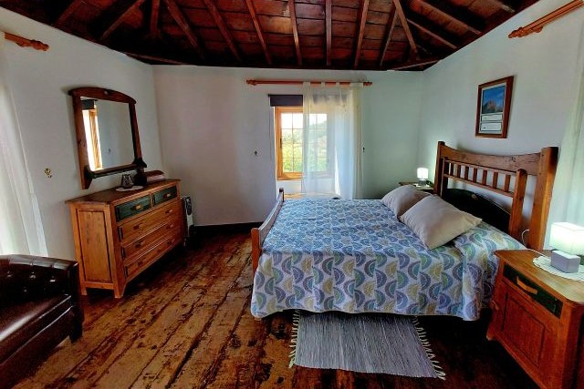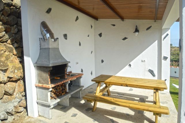 Voor het huis ligt een terras met zitje en uitzicht op de tuin en het zwembad, een fijne plek om te ontspannen in de buitenlucht. Daarnaast is er een overdekte barbecueplek met picknicktafel, ideaal voor een gezellige maaltijd in de open lucht. Het hoogtepunt is het privé zwembad van 7,5 bij 3,7 meter, met een diepte van 1,5 tot 2 meter. Vanaf hier heeft u een indrukwekkend uitzicht over de Atlantische Oceaan en de bergen, dat elke duik en ieder rustmoment extra bijzonder maakt.