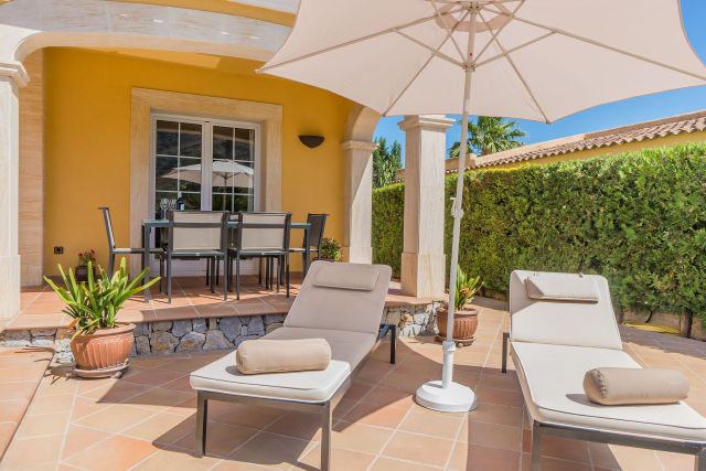 Buiten geniet u van een gemeubileerd terras met barbecue en een tafeltennistafel. Rondom het privé zoutwaterzwembad van 7 x 3,5 meter staan ligbedden en parasols klaar en er is een buitendouche aanwezig. Vanaf het terras en de tuin heeft u een schitterend uitzicht over het glinsterende water van het Lago Menor en de groene heuvels op de achtergrond. Het geheel wordt omgeven door mediterrane planten en bloemen, waardoor een ontspannen en luxe sfeer ontstaat.