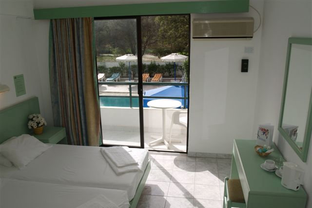 De hotelkamers zijn allemaal netjes ingericht. Uw kamer beschikt over twee eenpersoonsbedden, airconditioning, gratis wifi een koelkastje en een waterkoker. Er is een aparte badkamer met douche, föhn en toilet. Op aanvraag is het mogelijk om een kamer met bad te boeken. Elke kamer beschikt over een eigen balkon. Tevens heeft u de beschikking over badhanddoeken voor bij het zwembad.