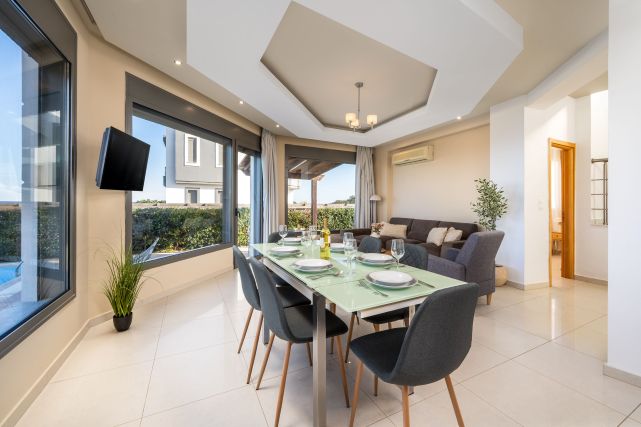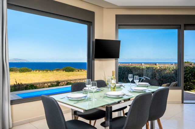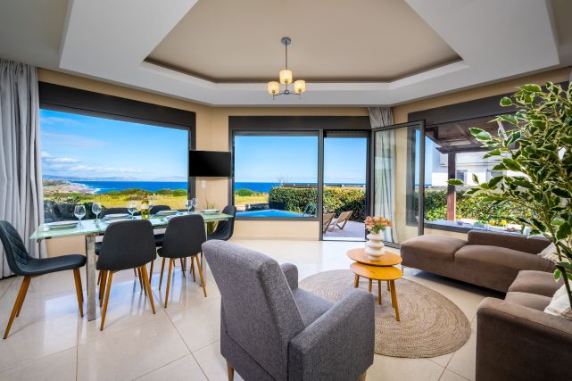 De villa’s van Aqua Natura zijn ruim en comfortabel ingericht en geschikt voor maximaal zeven personen. Binnen voelt het direct licht en ontspannen aan, met een gezellige woonkamer. Op de slaapbank kan een zevende persoon comfortabel overnachten. Uiteraard is er wifi en een televisie aanwezig. Vanuit de villa geniet u bovendien van een prachtig vrij uitzicht over zee, wat direct zorgt voor dat ultieme vakantiegevoel.