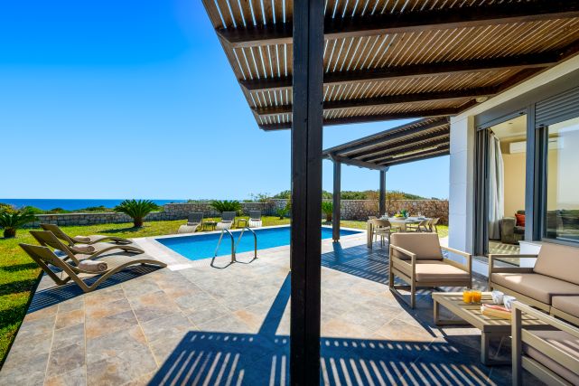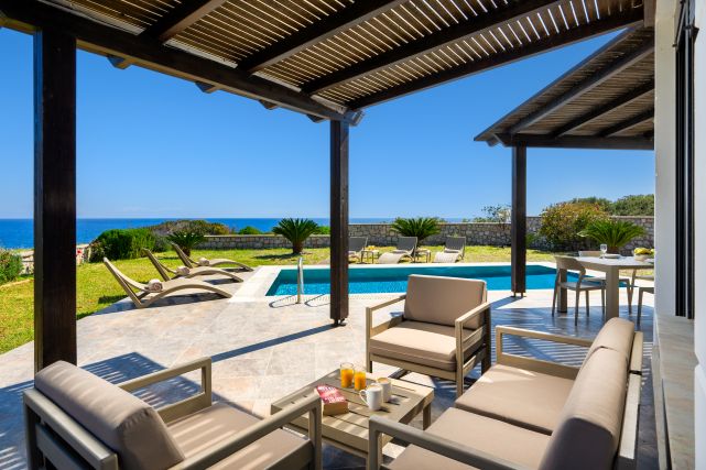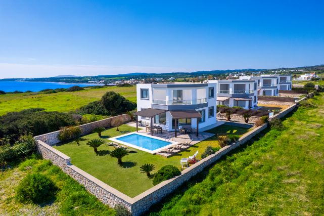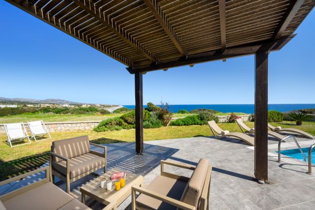 Buiten begint het echte genieten. Elke villa beschikt over een eigen zwembad, buitendouche en een ruim terras met comfortabele tuinmeubels. De barbecue en buiten eethoek onder het overdekte terras maken het geheel compleet voor lange zomeravonden. Het strand ligt op circa 120 meter afstand en is via een direct pad naar beneden goed bereikbaar, waardoor u altijd dichtbij zee bent voor een verfrissende duik.