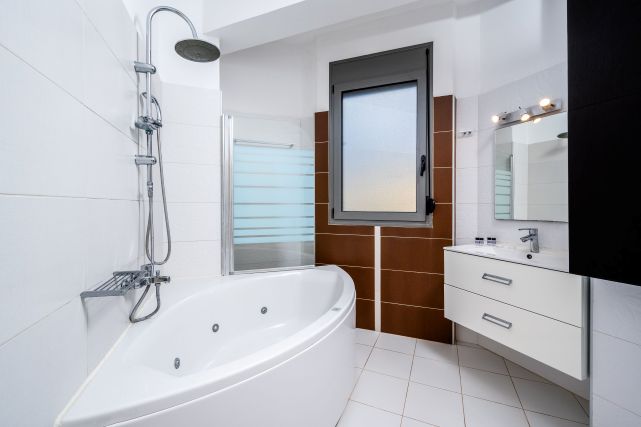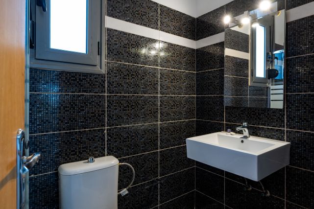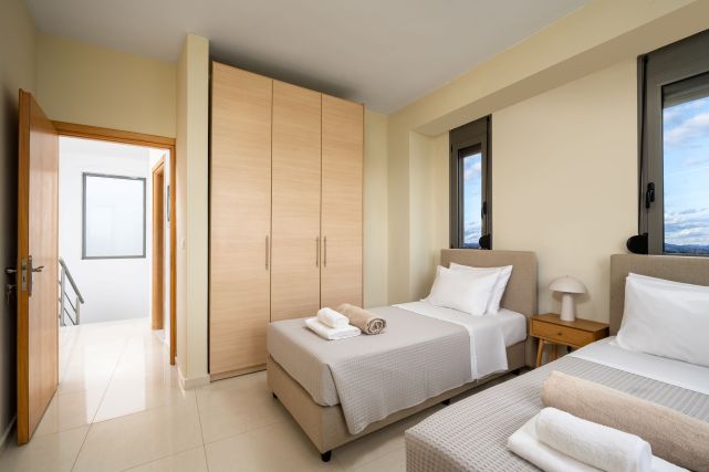 De villa beschikt over drie slaapkamers, allemaal voorzien van airconditioning en verduisterende gordijnen, zodat u hier heerlijk tot rust komt. Op de begane grond bevindt zich één slaapkamer met een tweepersoonsbed, evenals een badkamer met douche, wastafel, toilet en föhn. Op de eerste verdieping liggen de andere twee slaapkamers, waarvan één is ingericht met een tweepersoonsbed en de andere met twee eenpersoonsbedden. Er is voldoende kastruimte aanwezig. Ook op deze verdieping bevindt zich een tweede badkamer, compleet met ligbad, wastafel, toilet en föhn.