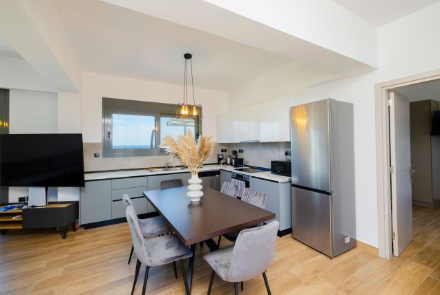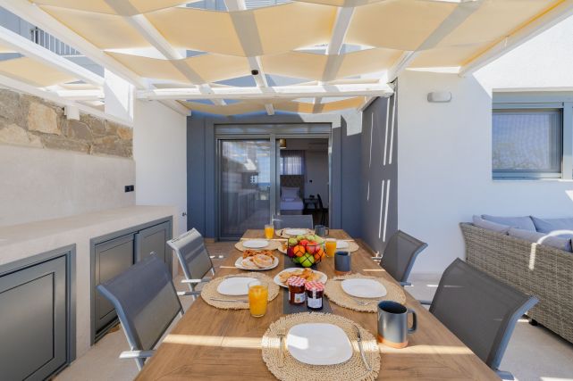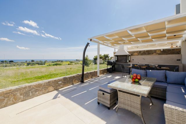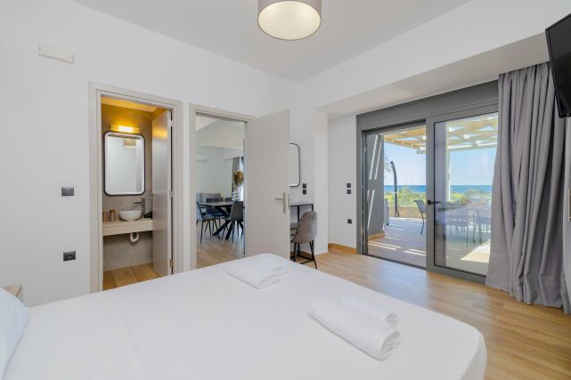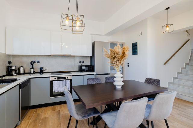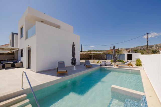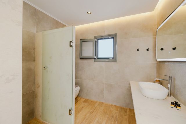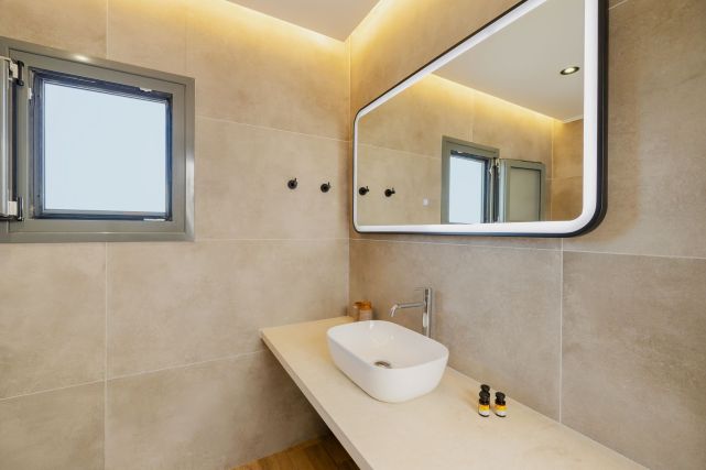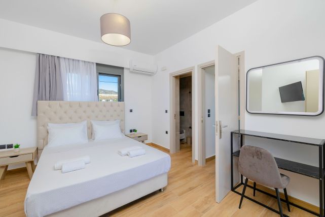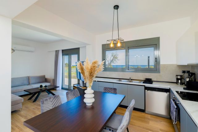 Villa Selestitis biedt plaats aan maximaal zes personen en heeft een frisse, moderne uitstraling. In de woonkamer vindt u een fijne zithoek waar u samen kunt ontspannen, met wifi en een televisie voor wat extra gemak. Dankzij de airconditioning blijft het binnen ook op warme dagen comfortabel. De keuken met eethoek ligt direct naast de woonkamer en is van alle gemakken voorzien. U beschikt hier over onder andere een koelkast, diepvries, oven, magnetron, vaatwasser, koffiezetapparaat en waterkoker.