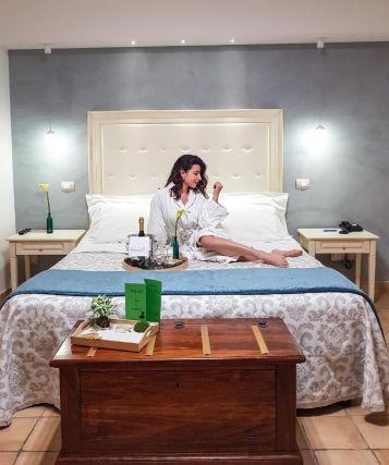 De tweepersoonskamers hebben een rustieke inrichting met houten balken aan het plafond, zandstenen muren en mooi meubilair. Het slaapgedeelte heeft een tweepersoonsbed met kwalitatief hoogwaardige matrassen en kussens, een ruime kledingkast en een bureautje. Verder beschikt u over een minibar, telefoon, kluisje, wifi, waterkoker en is er airconditioning in de kamer. Er is een flatscreen TV en vast internet op de kamer.