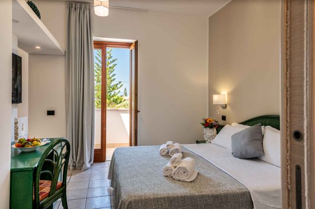 Er valt aangenaam daglicht naar binnen en u kijkt uit op de tuin van het hotel, wat zorgt voor een rustige en ontspannen sfeer. Deze kamer beschikt niet over een balkon.